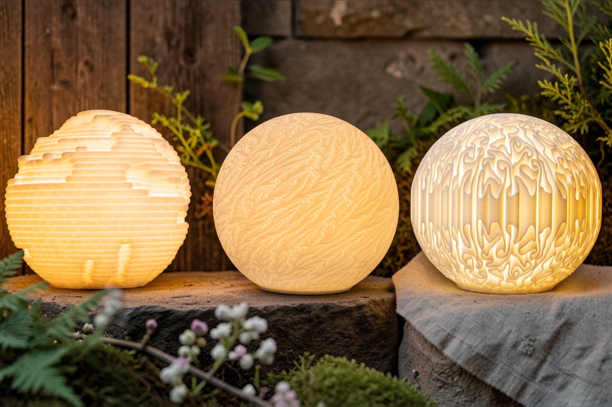 Each piece captures a moment in nature’s process, brought to life through light. Layer by layer, each lamp is 3D printed to create depth, texture, and a gentle diffusion of light that transforms any space into something calm and intentional.